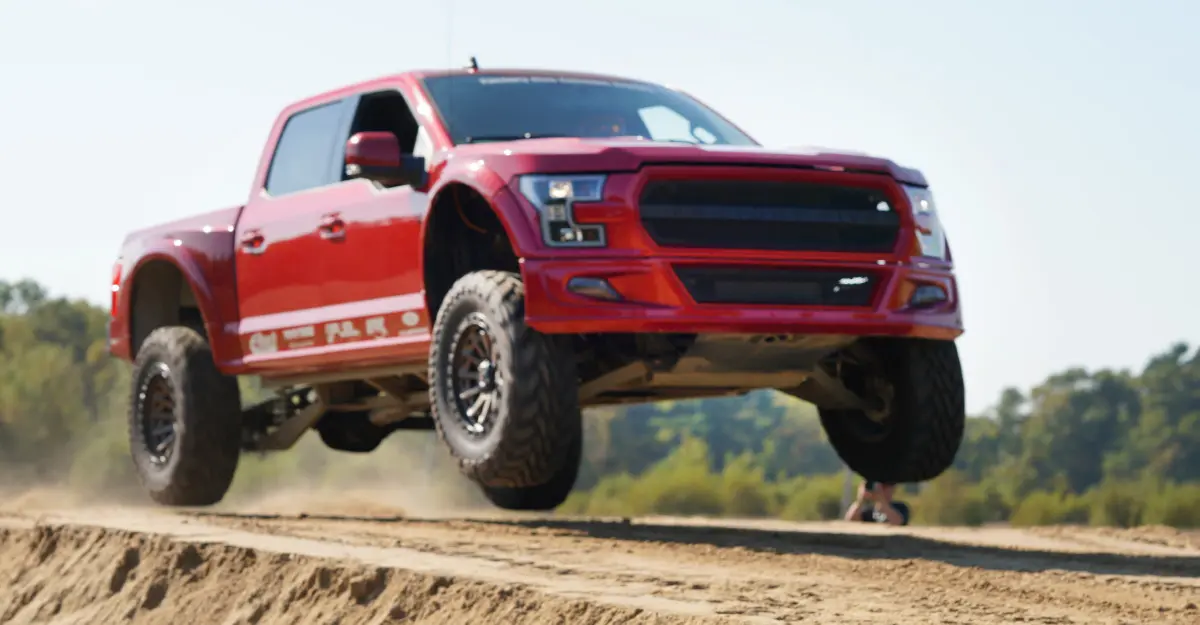 The idea is quite simple. We have put our chassis engineering skills to work to design a super strong off-road capable tubular steel frame that replaces the Ford F-150 ladder frame. Attached to that chassis is a custom off-road long-travel suspension. We keep the awesome F-150 aluminum cab, but give you an all-new front suspension with massive Fox shocks and tubular control arms, hood, fenders, rear quarter panels, rear 4-link suspension with tubular control arms and remote reservoir Fox shocks, aluminum truck bed, tailgate, and bumpers.