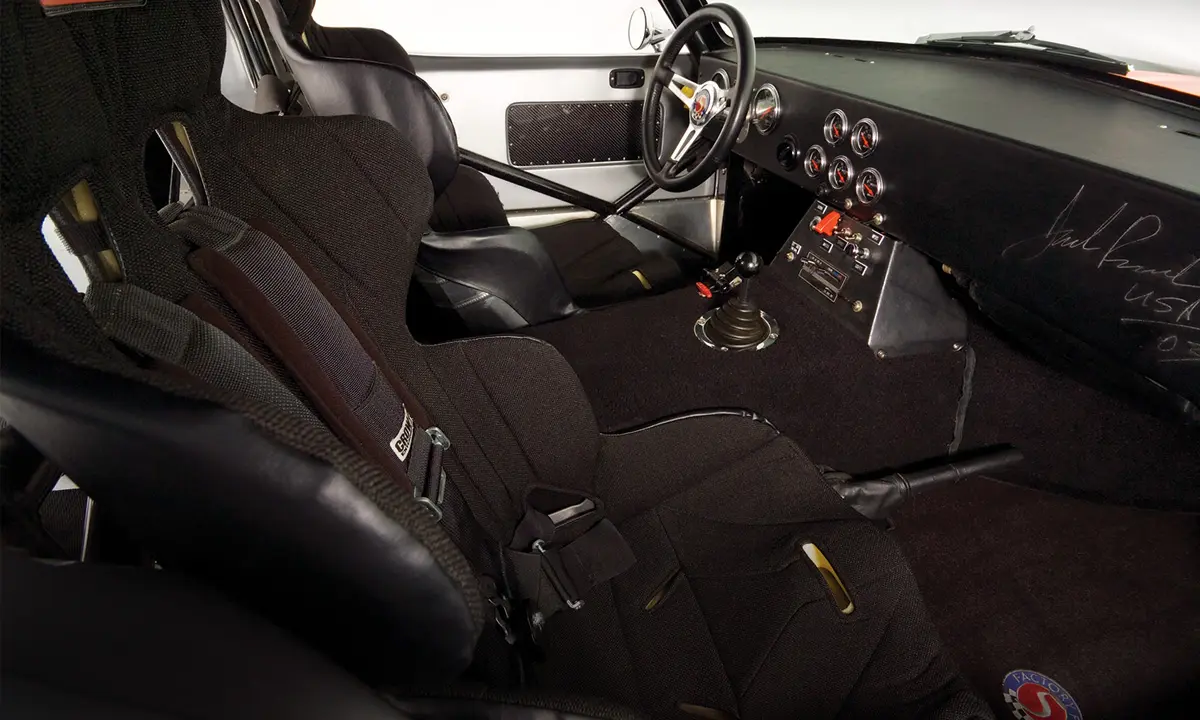 The kits come with a complete interior and include quality items like the original style bucket seats. Vintage details abound, like our beautiful wood and aluminum steering wheel and safety items like the heart-attack serious race-cage, and 5-point racing harnesses for passenger and driver round out a nice package.