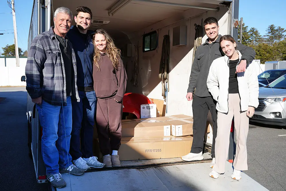 The holiday week started off this morning with a family picking up their new Factory Five! Carly D. surprised Hunter L. from Virginia with a Mk4 Roadster kit for Christmas. Today they came by along with family members Kent, Tanner, and Jen L. for a tour and to load everything up.